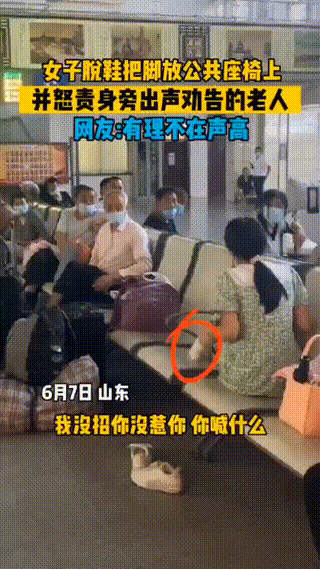 視訊中,一名女子在等候區將腳放在了公共座椅上,毫不避諱地脫掉鞋子,似乎只是為了小憩一下,但這一行為被一位路過的老人看不下去,上前提醒。然而,雙方的言語交鋒隨即爆發。究竟老人的善意勸告為什麼引來了女子的反感?這背后似乎隱藏著更多故事,令人遐想。