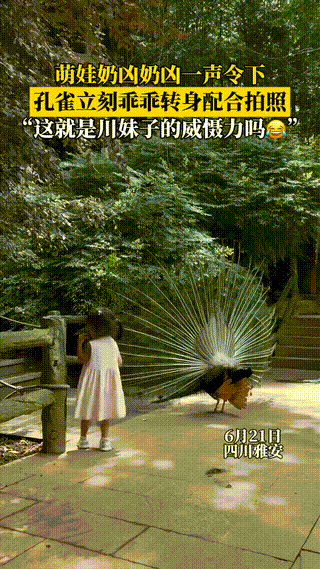 視訊中,一位萌娃站在景區里,面對一只美麗的孔雀。孩子的一個簡單指令,竟讓孔雀瞬間轉身,配合得天衣無縫!這場景絕對讓人懷疑孔雀是否經過特訓。這個若隱若現的默契背后究竟發生了什麼?別走開,答案可能超乎你的想象。