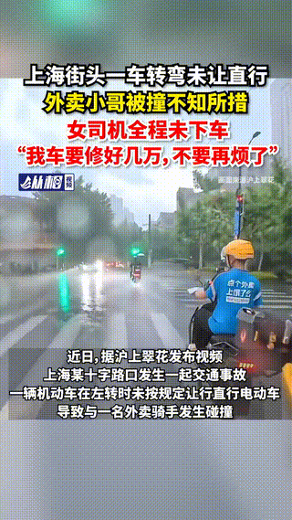 視訊記錄了一場發生在上海街頭的交通意外。一輛轉彎的汽車未讓直行車輛,導致一位外賣小哥被撞。事故發生后,小哥明顯驚慌失措,而車內的女司機卻拒絕下車,對修車費用的抱怨聲不絕于耳。這段視訊展現了事故的緊張和沖突,但具體的后續處理卻留有懸念,讓人不禁想了解更多。