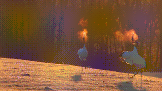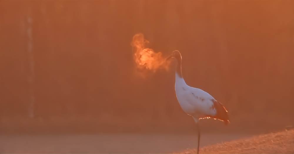 在視訊中,我們看到夕陽下,仙鶴的呼吸變成了細膩的白霧。這是因為仙鶴與我們一樣,用肺部呼吸,呼出的空氣中包含水蒸氣。當仙鶴的體溫較高的呼吸遇到冰冷的空氣時,這些水蒸氣迅速冷卻并凝結成細小的水滴或冰晶,形成白霧,這就是仙鶴吐息的奇妙景象。