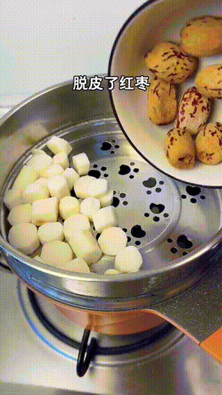 首先,將山藥和紅棗蒸熟去皮,搗成細膩的山藥泥和紅棗泥。然后,把山藥泥攤平,在中間均勻地鋪上香甜的紅棗泥,接著將其做成餅狀。整個制作過程不需要復雜的調味,因為山藥自身的清甜和棗泥的香味已經足夠出彩。這道小吃富含膳食纖維、維生素和礦物質,是寶寶營養攝入的好選擇。