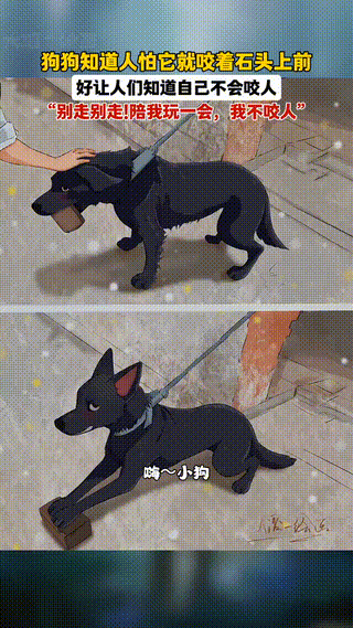 視訊中的小狗叼著一塊石頭,小心翼翼地靠近一個人。它的動作仿佛是在試探,卻又充滿了期待,期待著被接納。狗狗不是不害怕,而是在用最直接的方式表達善意。對于它,它想表達的是:「看,我咬著石頭,你不用怕我。」這時,主人略微猶豫了一下,隨后撿起了石頭,并決定和小狗玩耍。