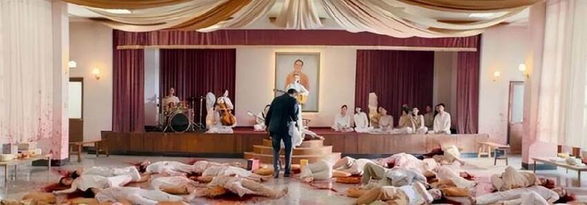 當然,最出圈的還是邪教靈修堂里,他揭開其偽善真容,並將所有愚昧教眾來了個連鍋端,在那一刻無關憤怒、無關替天行道,他自比神明,對人間發起了一場審判;既正義端莊,又邪氣凜然,這樣的男主角人設和電影基調,在內地影視作品里很少能看到,原以為這只是一部黑幫片,沒想到還是一部哲學片,也難怪有觀眾願意二刷甚至三刷。