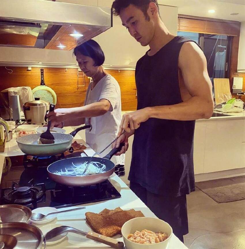 歲月凝香,炊煙裊裊,只要有空,阮經天都會下廚,熟練地翻動著鍋鏟,鍋中食物隨著動作翻滾,鍋中滋啦滋啦的熱氣聲,食物的香氣彌漫在空氣中,不禁讓人食慾大增;開蓋冒煙的瞬間,撫慰著深夜裡饑渴的胃,溫暖人間,食物掛滿汁水,暖暖靈動的光芒,橘黃色的燈光映襯在食物上,彷彿披上了一層濾鏡,顯得更加美味。